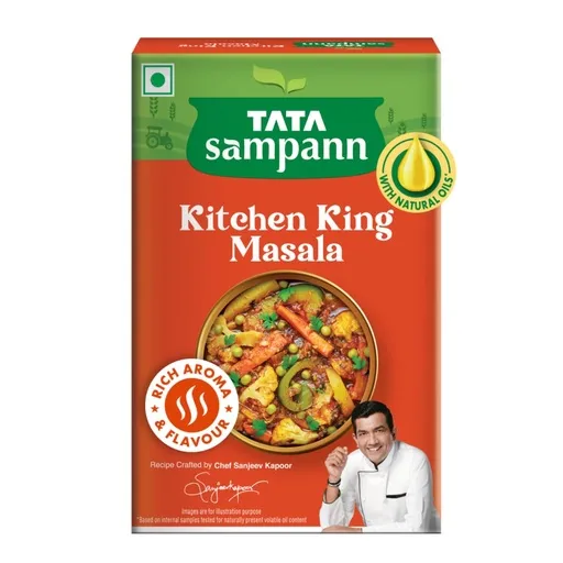 Experience the rich flavors of Tata Kitchen King Masala, a blend crafted to elevate your culinary creations. Packed with a symphony of aromatic spices including coriander, cumin, and turmeric, each spoonful adds depth and warmth to your dishes. Perfect for both vegetarian and non-vegetarian recipes, this versatile masala enhances curries, gravies, and stir-fries with its robust taste profile. Whether youre preparing traditional Indian meals or experimenting with new flavors, Tata Kitchen King Masala promises authenticity and quality in every dish. Elevate your cooking with Tatas commitment to deliciousness and convenience in every 100g pack.
